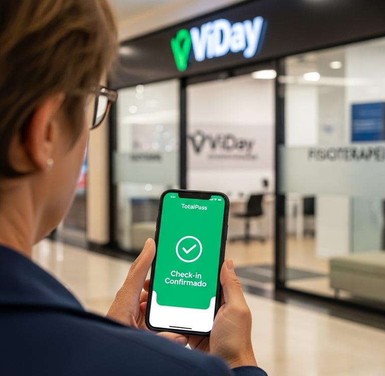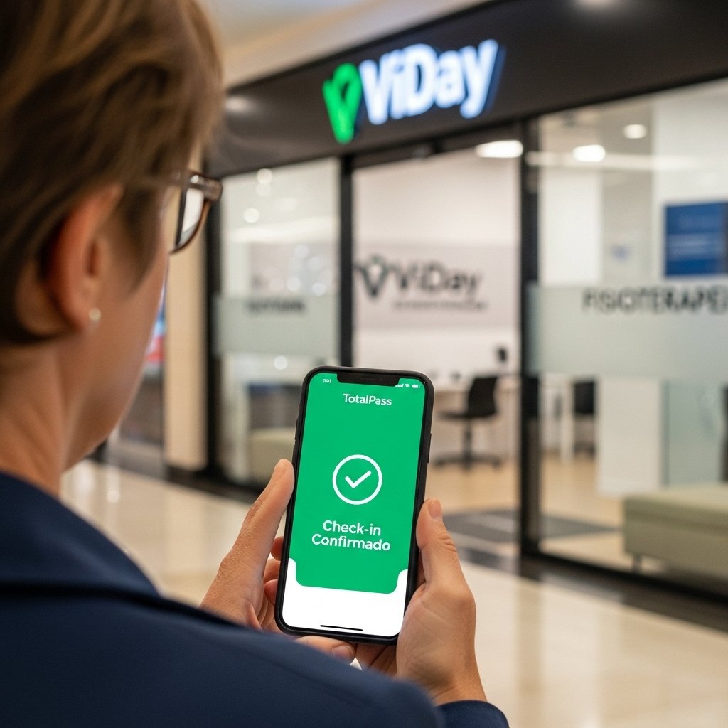 Na ViDay, acreditamos que nada deve ser um obstáculo para o seu bem-estar. Por isso, somos a única clínica da região onde você pode realizar todo o seu processo de reabilitação e fisioterapia utilizando apenas o seu plano Wellhub ou TotalPass. Sem burocracia, sem surpresas e com o mesmo padrão de atendimento exclusivo e individualizado que você merece. Use seu app para garantir sua autonomia e voltar a viver sem dor